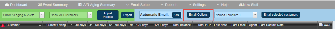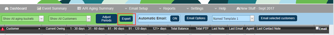 On the AR Aging Summary page, you can highlight customers that you need to