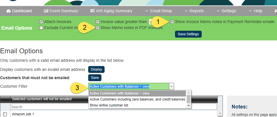 Invoice Memo Notes in the PDF invoice that is emailed to customers.
