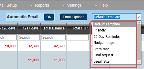 payment reminder that correspond to the above selection options.